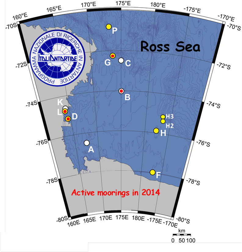Since 1994, the PNRA (Programma Nazionale di Ricerche in Antartide – Italian National Program for Antarctic Research, www.pnra.aq) has deployed a conspicuous number of oceanographic moorings in the Ross Sea (Figure 1). The moorings were deployed to monitor the oceanographic condition of the shelf waters, the precursor of the Antarctic Bottom Water (AABW), and to study the biogeochemical cycles of the largest Antarctic continental shelf sea and most biologically productive region of the Southern Ocean. Recently, the moorings have been modified to support the scientific focuses of the newly founded projects.